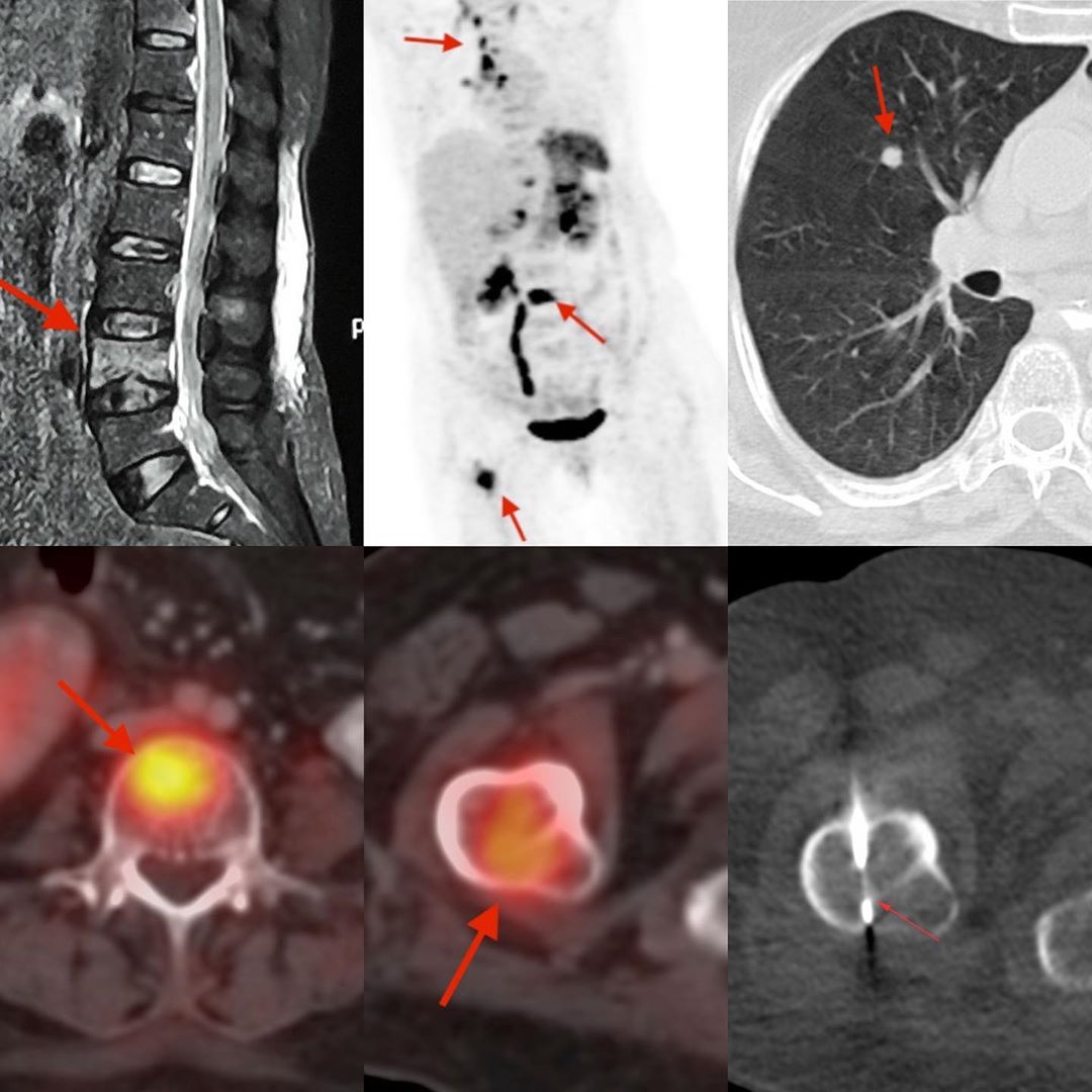This is a 62-years old lady with fever. After an MRI that showed a focal L4 lesion, a PET/CT was done to look for other lesions in the body given the high chance of metastasis / myeloma / lymphoma.